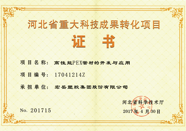 华体会(中国)hth获得河北省塑胶管道技术创新中心(筹)、供暖行业推荐品牌、中国轻工业塑料行业(塑料管材)十强企业