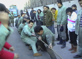 在跳绳比赛现场,更多的吸引眼球的是参赛选手多种多样使人眼花缭乱的跳绳姿势,结果有些出乎人们意料之外。男子组冠军是办公室的梁志强,小伙子胖胖的体型表现突出,在人们的注目下跳出了每分钟160圈的优异成绩,勇夺桂冠;女子组冠军是销售客服部的岳赛群,秀丽的身姿展示了巾帼不让须眉的风范。