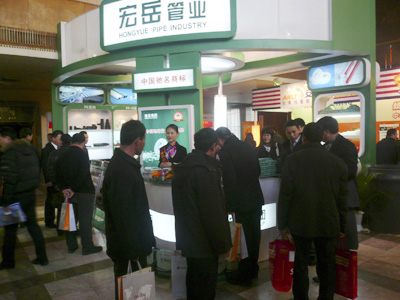 在华体会(中国)hthPVCφ630和PEφ630等大口径管材样品前,很多客户纷纷驻足观看,并详细询问了产品的性能和应用情况,当了解到公司下一步还将重点增加大口径市政管道及燃气输送道开发后,大家对华体会(中国)hth的发展速度和经营实力赞不绝口。