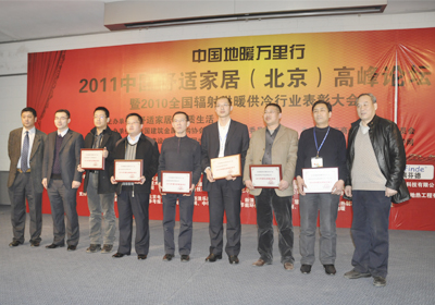 由中国建筑金属结构协会辐射供暖供冷委员会主办的“2010年度辐射供暖供冷行业年度评比活动”圆满结束,并于2011年3月4日在北京举行颁奖典礼,华体会(中国)hth管业凭借多年来在地暖行业的突出贡献及取得的巨大发展成就,被评选为“2010年度全国辐射供暖供冷行业先进集体”,集团公司总经理助理王明科和市场部经理刘汉良由于多年来积极参与地暖行业活动,为推动行业发展及企业建设发挥了重要的作用,被评选为“2010年度辐射供暖供冷行业先进工作者”。同时,秦皇岛华体会(中国)hth建筑安装有限公司荣获“2010年度全国辐射供暖供冷行业优秀施工企业”称号。