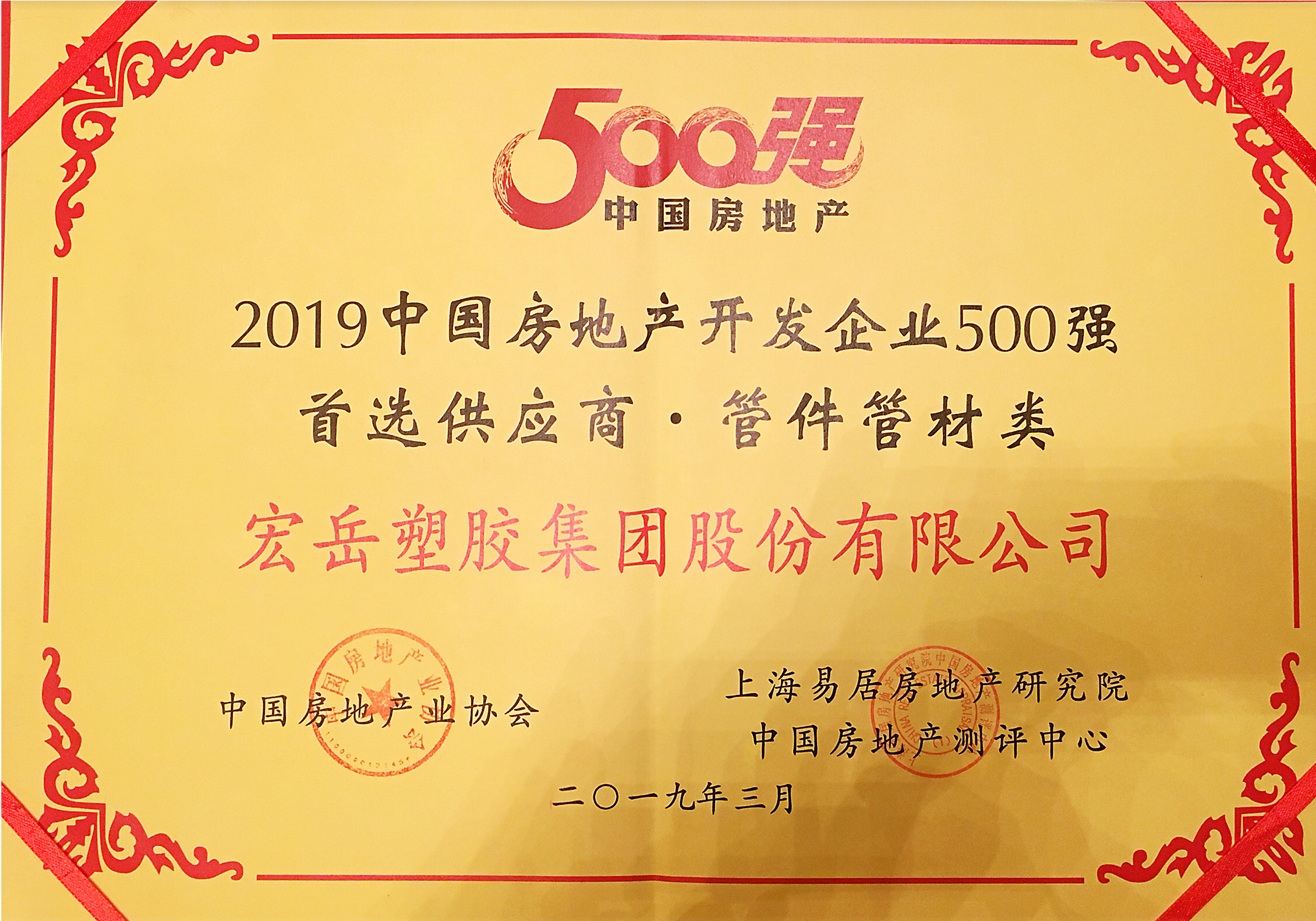 华体会(中国)hth集团连续6年获得“中国房地产开发企业500强首选供应商”。华体会(中国)hth深耕塑料管道行业,20几年如一日,坚守品质、不忘初心。