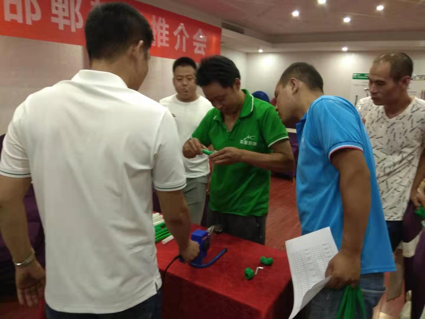 会上,华体会(中国)hth1+邯郸服务中心向在场的水电技师们隆重推出了PE-Xa零漏点给水系统,该系统较目前市场主流给水系统降低70%的漏水风险点,耐压性高67%,耐温性高32%。