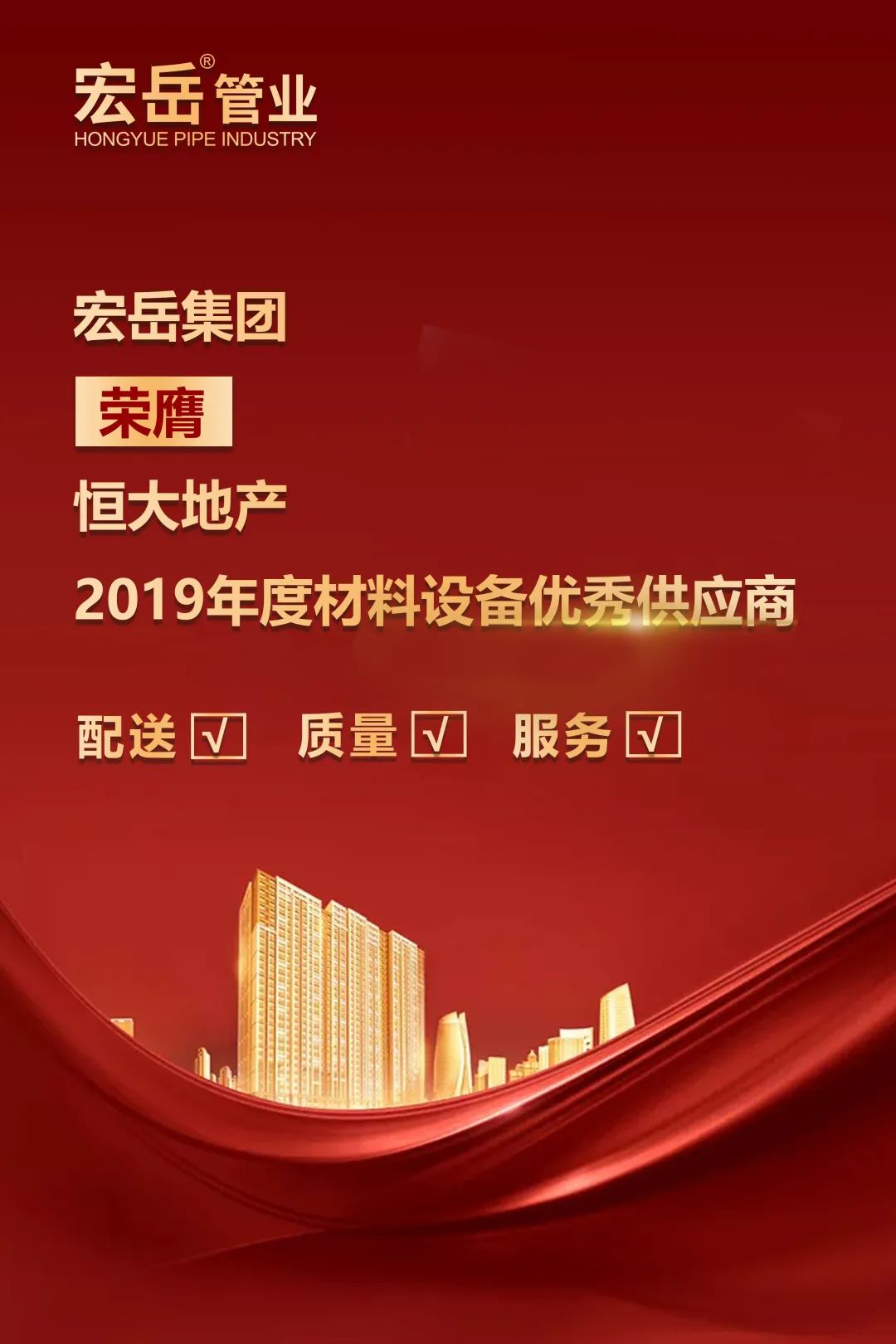 近日,恒大地产集团发布了“恒大地产2019年度材料设备优秀供应商及质量优质奖名单”名单,华体会(中国)hth集团凭借优异的产品品质、高效的供货、专业的服务,荣获“恒大地产集团材料设备2019年度优秀供应商”,华体会(中国)hth集团自2012年与恒大集团合作以来,已连续多年获得该项殊荣,已成为恒大集团重要战略合作伙伴。