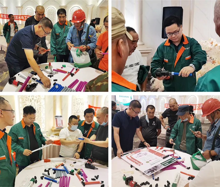 产品推广,需要以实力说话。东北区域经理详细为大家介绍了华体会(中国)hth1+模式和产品模块。并现场演示了新产品PE-Xa及其连接技术和在供水系统中的优势。性能优越的PE-Xa管材,便捷牢固的快易连接,耳目一新的科学系统设计,让许多嘉宾步入“PE-Xa忠实粉丝”行列。