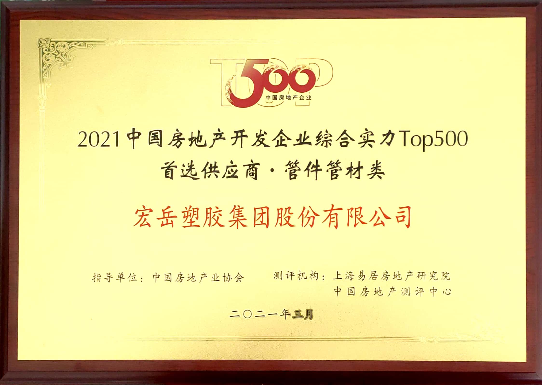 华体会(中国)hth塑胶集团2014-2021连续8年蝉联中国房地产500强首选供应商品牌,品牌首选率荣登前五。