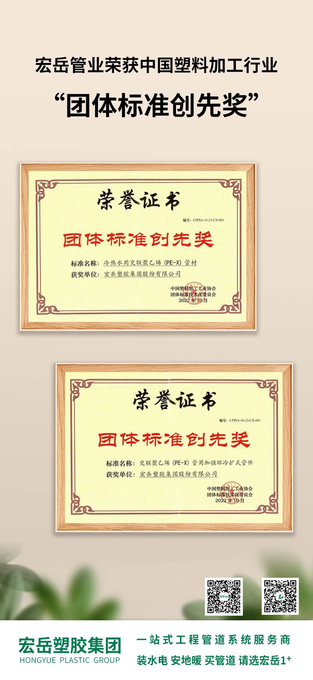 华体会(中国)hth主导编制的《冷热水用交联聚乙烯(PE-X)管材》、《交联聚乙烯(PE-X)管用加强环冷扩式管件》两项团标,将产品及连接技术在专业的角度上给予了注解与规范,带动了行业新产品、新技术的推广和应用。