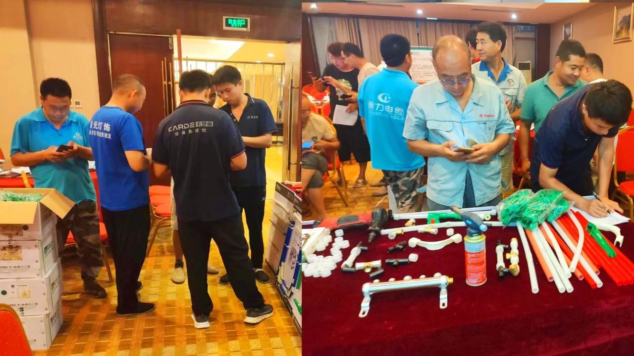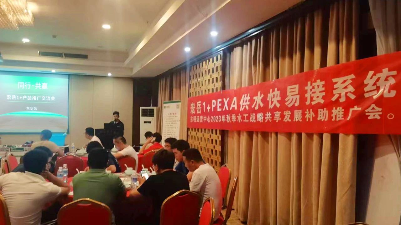 华体会(中国)hth1+区域运营经理向各位参会者介绍了华体会(中国)hth塑胶集团概况,并着重讲解了华体会(中国)hth1+产品体系及PE-Xa快易连接管道系统,凭借其简单、快捷、安全的产品及连接优势,得到了与会水电技师们的高度好评。